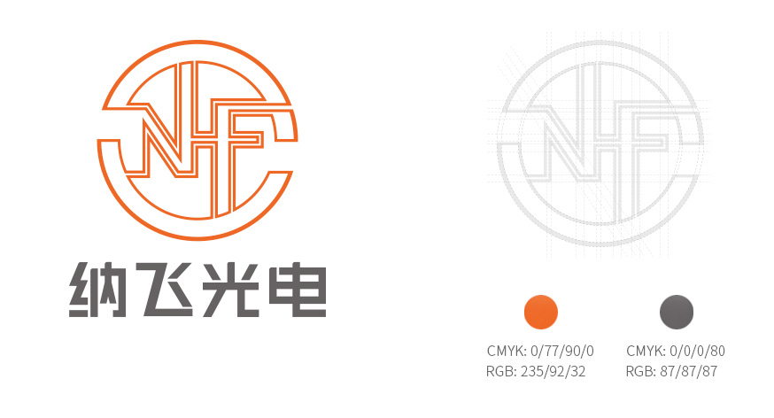 纳飞光电,VI设计,logo设计,其中logo以NF为切入,以清晰的橙色线条体现电流元素,VI颜色
