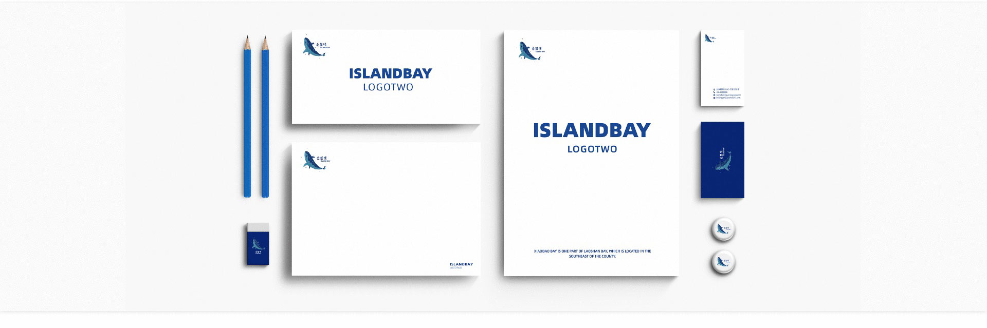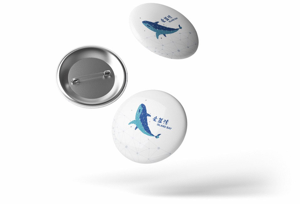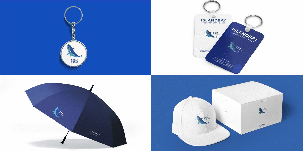 青岛蓝色硅谷,爱蓝湾科技开发区,logo设计,延展礼品设计,其中logo设计以科技蓝为主色,形状融入白鲸