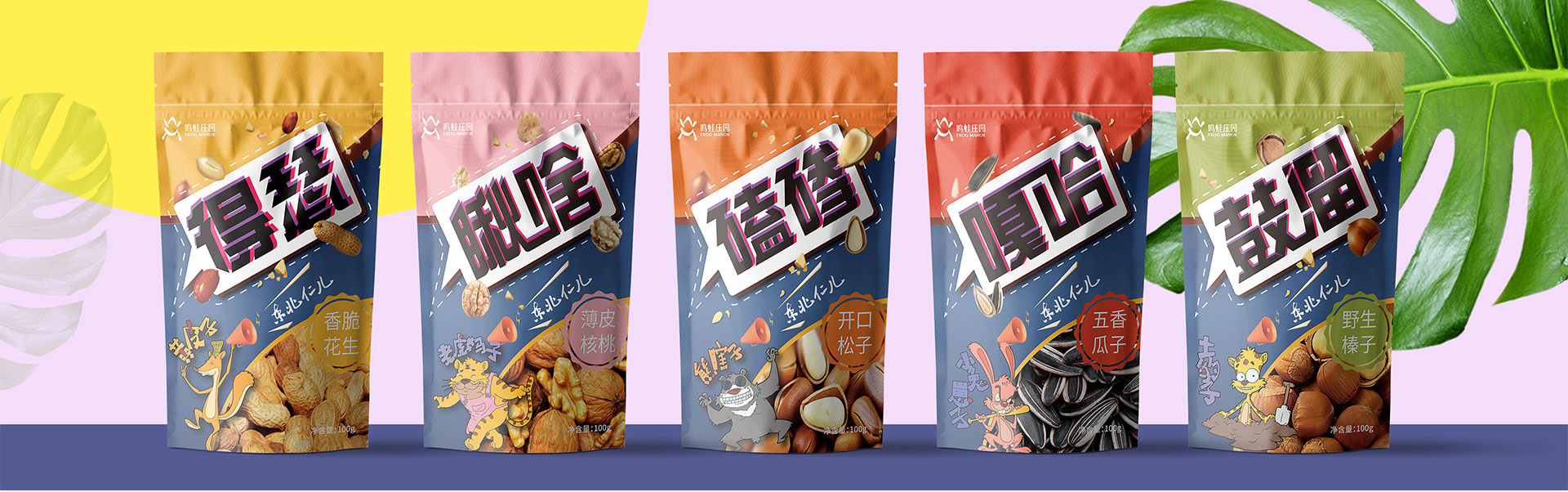 鸣蛙庄园,logo设计,各类包装设计,logo以绿色融入青蛙的形状,代表鸣娃及其产品绿色自然的品质,产品